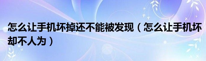 大家好,我是小科,我来为大家解答以上问题。怎么让手机坏掉还不能被发现,怎么让手机坏却不人为很多人还不知道,现在让我们一起来看看吧!