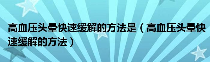 1、高血压引起头晕快速缓解的方法,主要是降血压治疗,血压控制后可能会症状缓解。