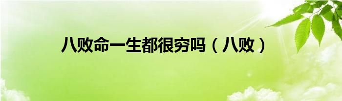 大家好,小联来为大家解答以上的问题。八败命一生都很穷吗,八败这个很多人还不知道,现在让我们一起来看看吧!
