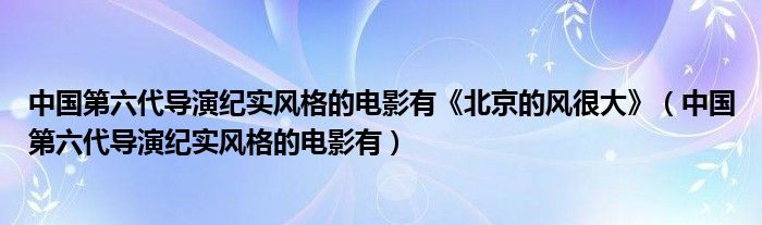 大家好,我是小科,我来为大家解答以上问题。中国第六代导演纪实风格的电影有《北京的风很大》,中国第六代导演纪实风格的电影有很多人还不知道,现在让我们一起来看看吧!
