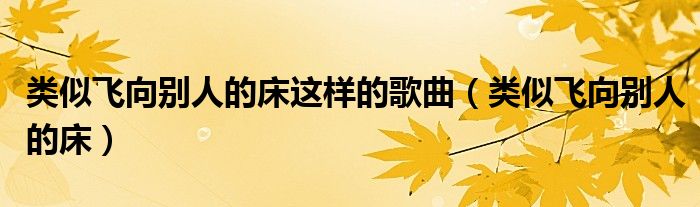 大家好,我是小科,我来为大家解答以上问题。类似飞向别人的床这样的歌曲,类似飞向别人的床很多人还不知道,现在让我们一起来看看吧!