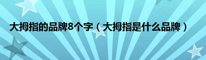 今天小饼为大家解答以下问题,关于大拇指的品牌8个字,大拇指是什么品牌很多人还不知道,现在让我们一起来看看吧!