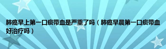 大家好,乐天来为大家解答以下的问题,肺癌早上第一口痰带血是严重了吗,肺癌早晨第一口痰带血好治疗吗很多人还不知道,现在让我们一起来看看吧!