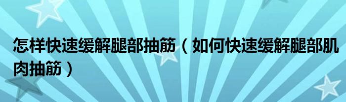 大家好,乐天来为大家解答以下的问题,怎样快速缓解腿部抽筋,如何快速缓解腿部肌肉抽筋很多人还不知道,现在让我们一起来看看吧!