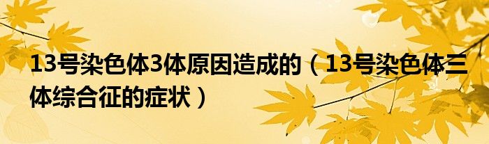 大家好,乐天来为大家解答以下的问题,13号染色体3体原因造成的,13号染色体三体综合征的症状很多人还不知道,现在让我们一起来看看吧!