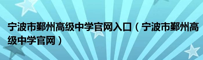 关于宁波市鄞州高级中学官网入口,宁波市鄞州高级中学官网这个很多人还不知道,今天菲菲来为大家解答以上的问题,现在让我们一起来看看吧!