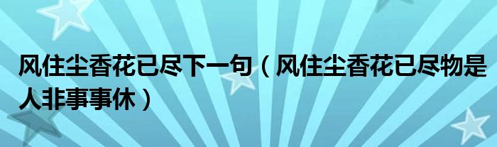 关于风住尘香花已尽下一句,风住尘香花已尽物是人非事事休这个很多人还不知道,今天菲菲来为大家解答以上的问题,现在让我们一起来看看吧!