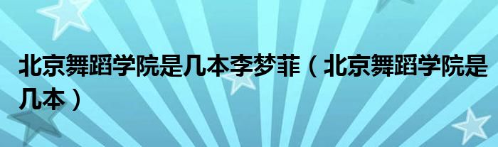 大家好,小晋来为大家解答以下问题,关于北京舞蹈学院是几本李梦菲,北京舞蹈学院是几本很多人还不知道,今天让我们一起来看看吧!