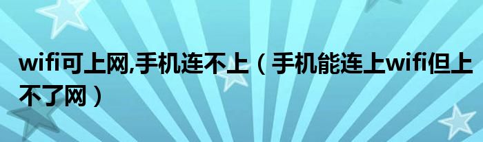 大家好,来宝来为大家解答以下问题,wifi可上网,手机连不上,手机能连上wifi但上不了网很多人还不知道,今天让我们一起来看看吧!
