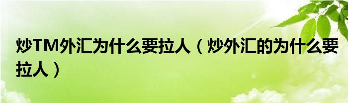 大家好,小晋来为大家解答以下问题,关于炒TM外汇为什么要拉人,炒外汇的为什么要拉人很多人还不知道,今天让我们一起来看看吧!