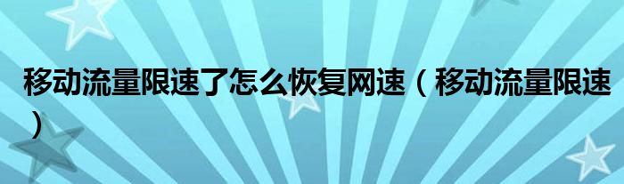大家好,小晋来为大家解答以下问题,关于移动流量限速了怎么恢复网速,移动流量限速很多人还不知道,今天让我们一起来看看吧!