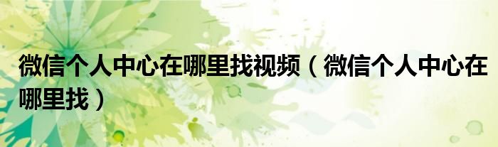 微信个人中心在哪里找视频(微信个人中心在哪里找)