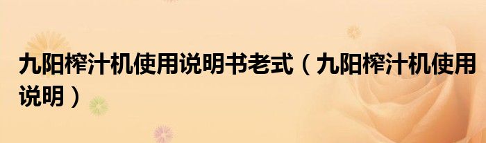 大家好,来宝来为大家解答以下问题,九阳榨汁机使用说明书老式,九阳榨汁机使用说明很多人还不知道,今天让我们一起来看看吧!