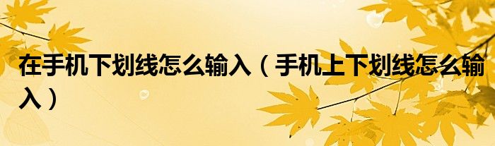大家好,小晋来为大家解答以下问题,关于在手机下划线怎么输入,手机上下划线怎么输入很多人还不知道,今天让我们一起来看看吧!