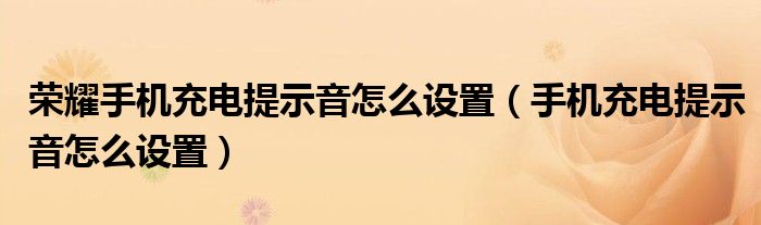 大家好,来宝来为大家解答以下问题,荣耀手机充电提示音怎么设置,手机充电提示音怎么设置很多人还不知道,今天让我们一起来看看吧!