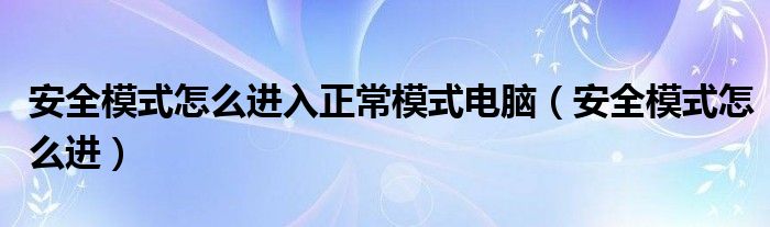 大家好,来宝来为大家解答以下问题,安全模式怎么进入正常模式电脑,安全模式怎么进很多人还不知道,今天让我们一起来看看吧!