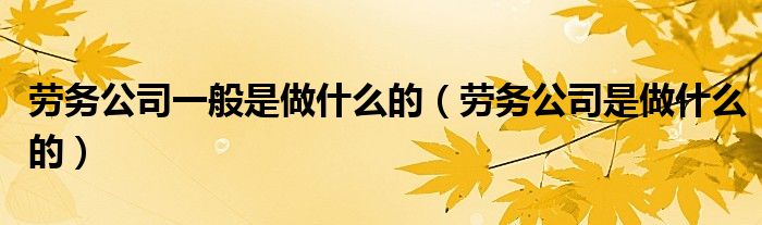 关于劳务公司一般是做什么的,劳务公司是做什么的这个很多人还不知道,今天菲菲来为大家解答以上的问题,现在让我们一起来看看吧!
