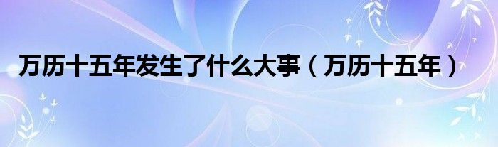 关于万历十五年发生了什么大事,万历十五年这个很多人还不知道,今天菲菲来为大家解答以上的问题,现在让我们一起来看看吧!