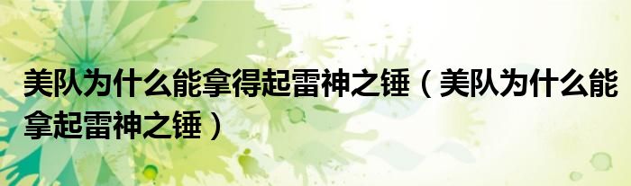 大家好,小晋来为大家解答以下问题,关于美队为什么能拿得起雷神之锤,美队为什么能拿起雷神之锤很多人还不知道,今天让我们一起来看看吧!