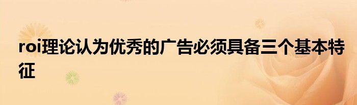 关于roi理论认为优秀的广告必须具备三个基本特征这个很多人还不知道,今天菲菲来为大家解答以上的问题,现在让我们一起来看看吧!