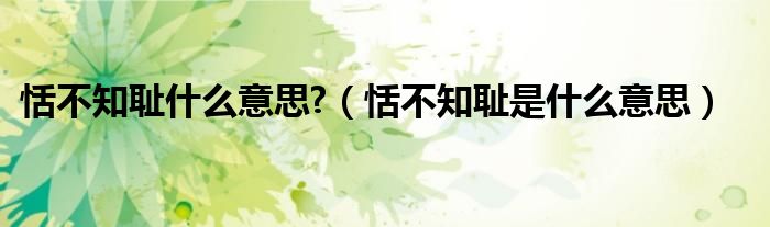 关于恬不知耻什么意思?,恬不知耻是什么意思这个很多人还不知道,今天菲菲来为大家解答以上的问题,现在让我们一起来看看吧!