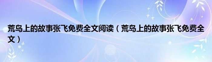 关于荒岛上的故事张飞免费全文阅读,荒岛上的故事张飞免费全文这个很多人还不知道,今天菲菲来为大家解答以上的问题,现在让我们一起来看看吧!