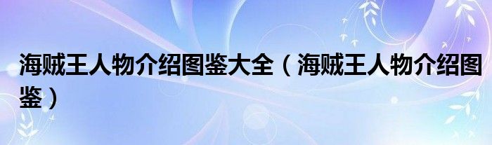关于海贼王人物介绍图鉴大全,海贼王人物介绍图鉴这个很多人还不知道,今天菲菲来为大家解答以上的问题,现在让我们一起来看看吧!