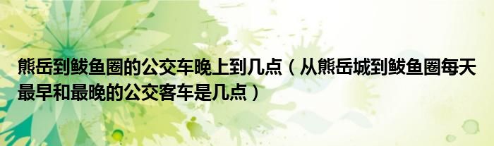 关于熊岳到鲅鱼圈的公交车晚上到几点,从熊岳城到鲅鱼圈每天最早和最晚的公交客车是几点这个很多人还不知道,今天菲菲来为大家解答以上的问题,现在让我们一起来看看吧!