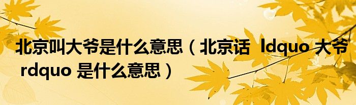 关于北京叫大爷是什么意思,北京话 ldquo 大爷 rdquo 是什么意思这个很多人还不知道,今天菲菲来为大家解答以上的问题,现在让我们一起来看看吧!