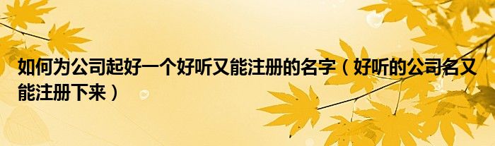 关于如何为公司起好一个好听又能注册的名字,好听的公司名又能注册下来这个很多人还不知道,今天菲菲来为大家解答以上的问题,现在让我们一起来看看吧!