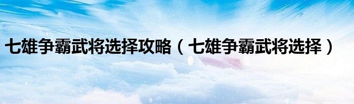七雄争霸武将选择攻略(七雄争霸武将选择)