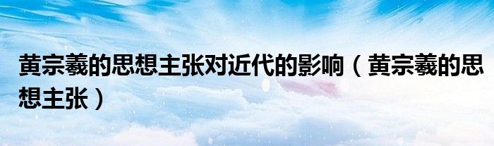 大家好,小晋来为大家解答以下问题,关于黄宗羲的思想主张对近代的影响,黄宗羲的思想主张很多人还不知道,今天让我们一起来看看吧!