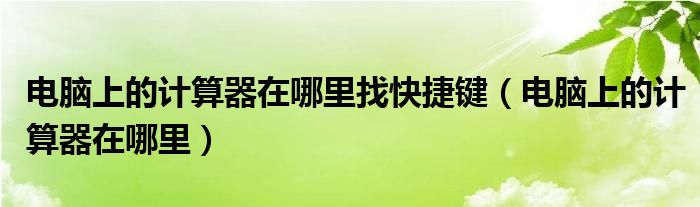 关于电脑上的计算器在哪里找快捷键,电脑上的计算器在哪里这个很多人还不知道,今天菲菲来为大家解答以上的问题,现在让我们一起来看看吧!