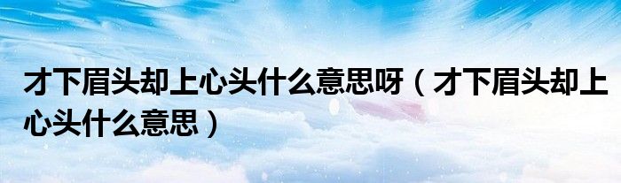 关于才下眉头却上心头什么意思呀,才下眉头却上心头什么意思这个很多人还不知道,今天菲菲来为大家解答以上的问题,现在让我们一起来看看吧!