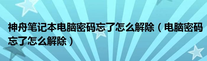 大家好,来宝来为大家解答以下问题,神舟笔记本电脑密码忘了怎么解除,电脑密码忘了怎么解除很多人还不知道,今天让我们一起来看看吧!