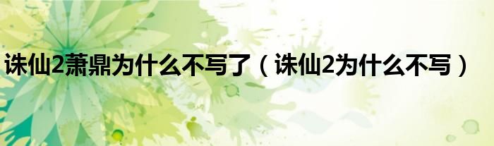 诛仙2萧鼎为什么不写了(诛仙2为什么不写)