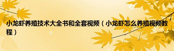 关于小龙虾养殖技术大全书和全套视频,小龙虾怎么养殖视频教程这个很多人还不知道,今天菲菲来为大家解答以上的问题,现在让我们一起来看看吧!