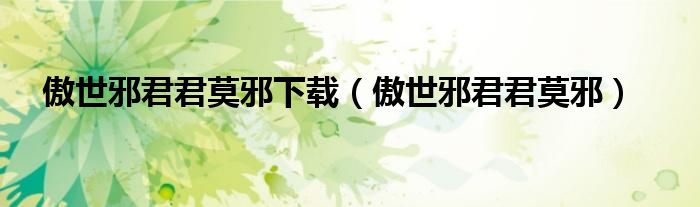 傲世邪君君莫邪下载(傲世邪君君莫邪)