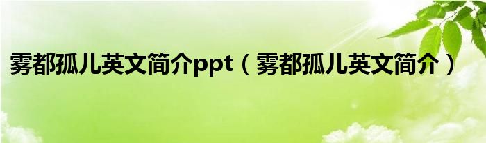 关于雾都孤儿英文简介ppt,雾都孤儿英文简介这个很多人还不知道,今天菲菲来为大家解答以上的问题,现在让我们一起来看看吧!