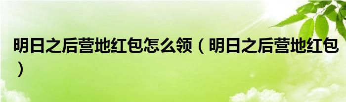 大家好,小晋来为大家解答以下问题,关于明日之后营地红包怎么领,明日之后营地红包很多人还不知道,今天让我们一起来看看吧!