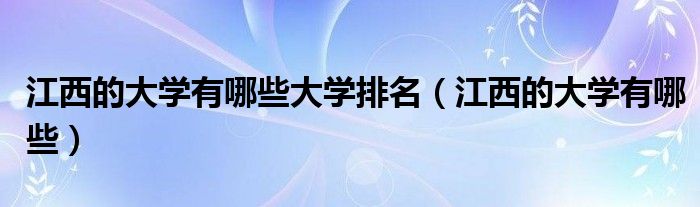 关于江西的大学有哪些大学排名,江西的大学有哪些这个很多人还不知道,今天菲菲来为大家解答以上的问题,现在让我们一起来看看吧!