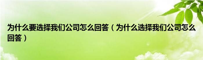 关于为什么要选择我们公司怎么回答,为什么选择我们公司怎么回答这个很多人还不知道,今天菲菲来为大家解答以上的问题,现在让我们一起来看看吧!
