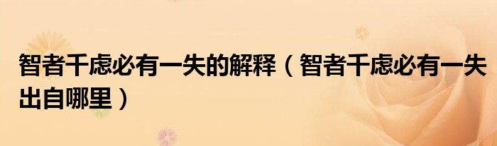 智者千虑必有一失的解释(智者千虑必有一失出自哪里)