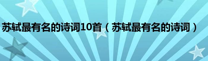关于苏轼最有名的诗词10首,苏轼最有名的诗词这个很多人还不知道,今天菲菲来为大家解答以上的问题,现在让我们一起来看看吧!