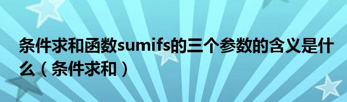 大家好,小晋来为大家解答以下问题,关于条件求和函数sumifs的三个参数的含义是什么,条件求和很多人还不知道,今天让我们一起来看看吧!