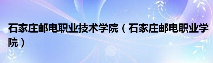 关于石家庄邮电职业技术学院,石家庄邮电职业学院这个很多人还不知道,今天菲菲来为大家解答以上的问题,现在让我们一起来看看吧!
