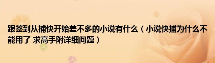 关于跟签到从捕快开始差不多的小说有什么,小说快捕为什么不能用了 求高手附详细问题这个很多人还不知道,今天菲菲来为大家解答以上的问题,现在让我们一起来看看吧!