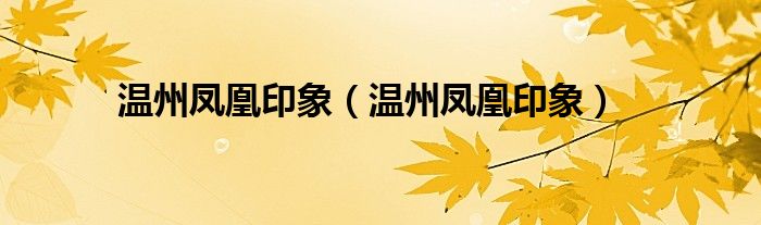 温州凤凰印象(温州凤凰印象)