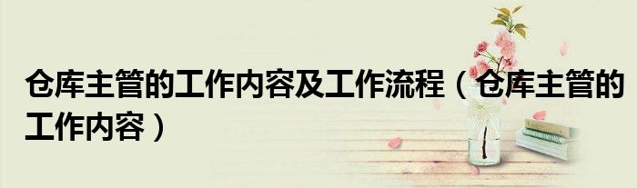 关于仓库主管的工作内容及工作流程,仓库主管的工作内容这个很多人还不知道,今天菲菲来为大家解答以上的问题,现在让我们一起来看看吧!