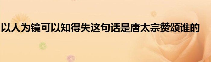 关于以人为镜可以知得失这句话是唐太宗赞颂谁的这个很多人还不知道,今天菲菲来为大家解答以上的问题,现在让我们一起来看看吧!